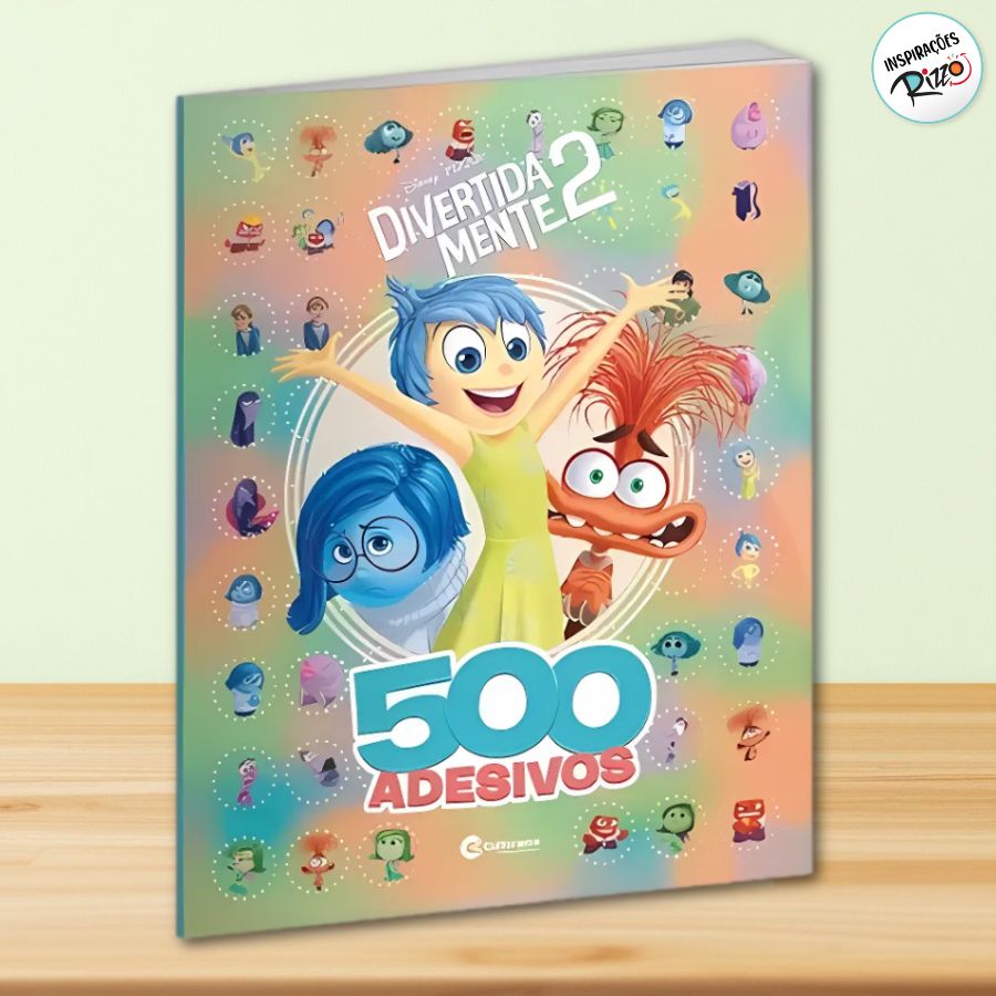 Livro com atividades, desenhos para colorir e adesivos, com tema Divertidamente, licenciado Disney
