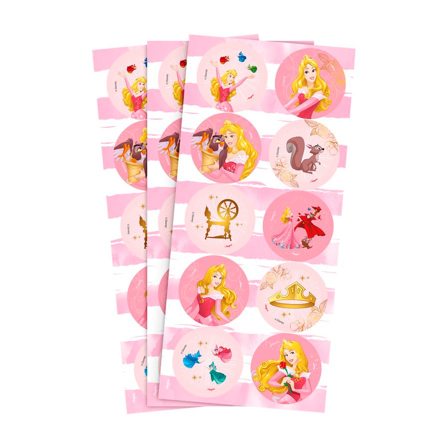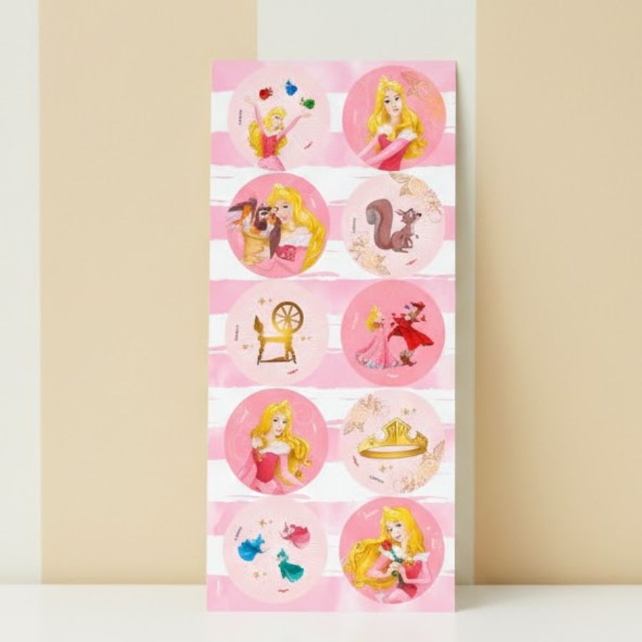 O adesivo redondo da Aurora é uma delicada representação da princesa clássica da Disney, exalando elegância e romance. Com tons suaves, este adesivo é uma adição encantadora para qualquer iten, como por exemplo: tubetes, latinhas de doce, baleiros , trazendo um toque de magia dos contos de fadas para a decoração.