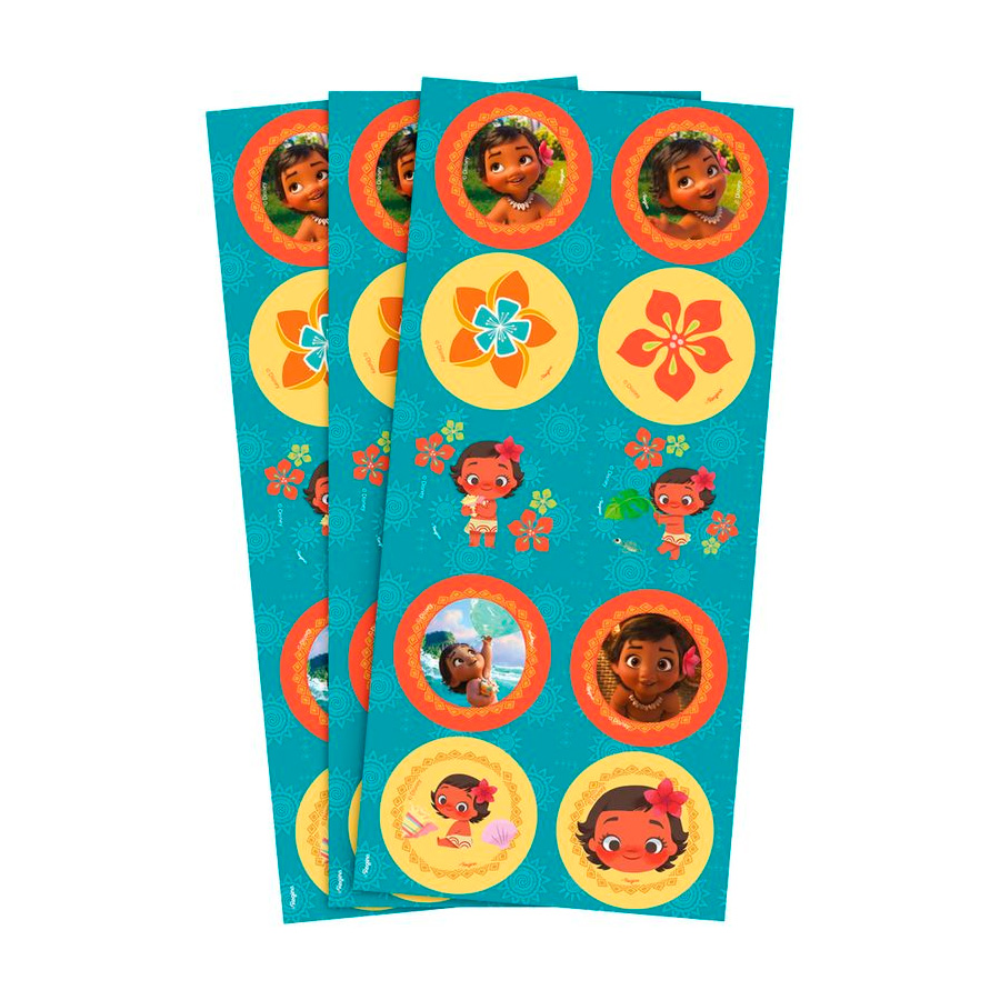 O adesivo redondo decorado da Moana baby é uma adorável representação da personagem favorita dos pequenos, trazendo todo o encanto e aventureiro do universo de Moana para decorar qualquer superfície.