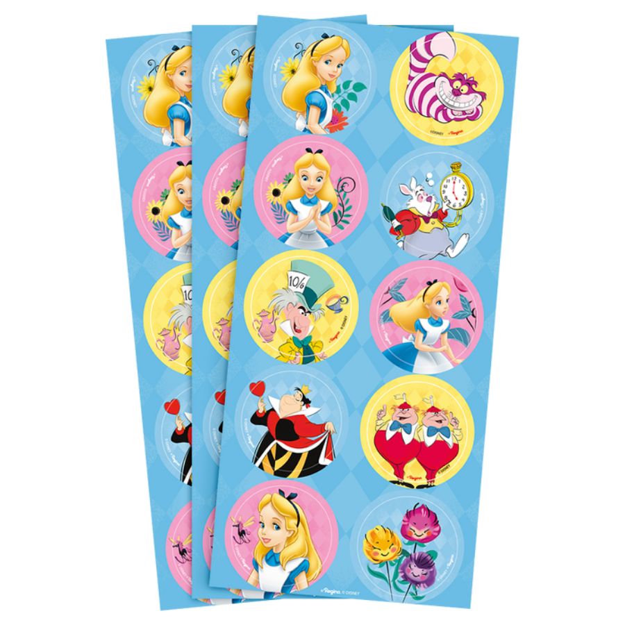 O Adesivo Redondo - Alice no País das Maravilhas é um adesivo decorativo com ilustrações dos personagens da história, ideal para personalizar festas, lembrancinhas e projetos criativos.