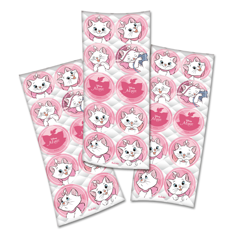Adesivos decorativos inspirados na Marie, ideais para personalizar festas temáticas, lembrancinhas e embalagens.