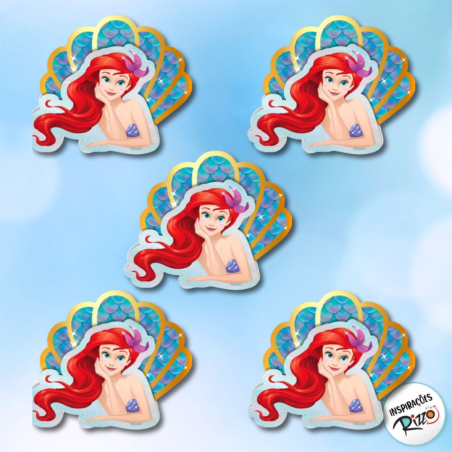 Aplique decorativo impresso em EVA, tema Ariel e Conchas. Licenciado Disney