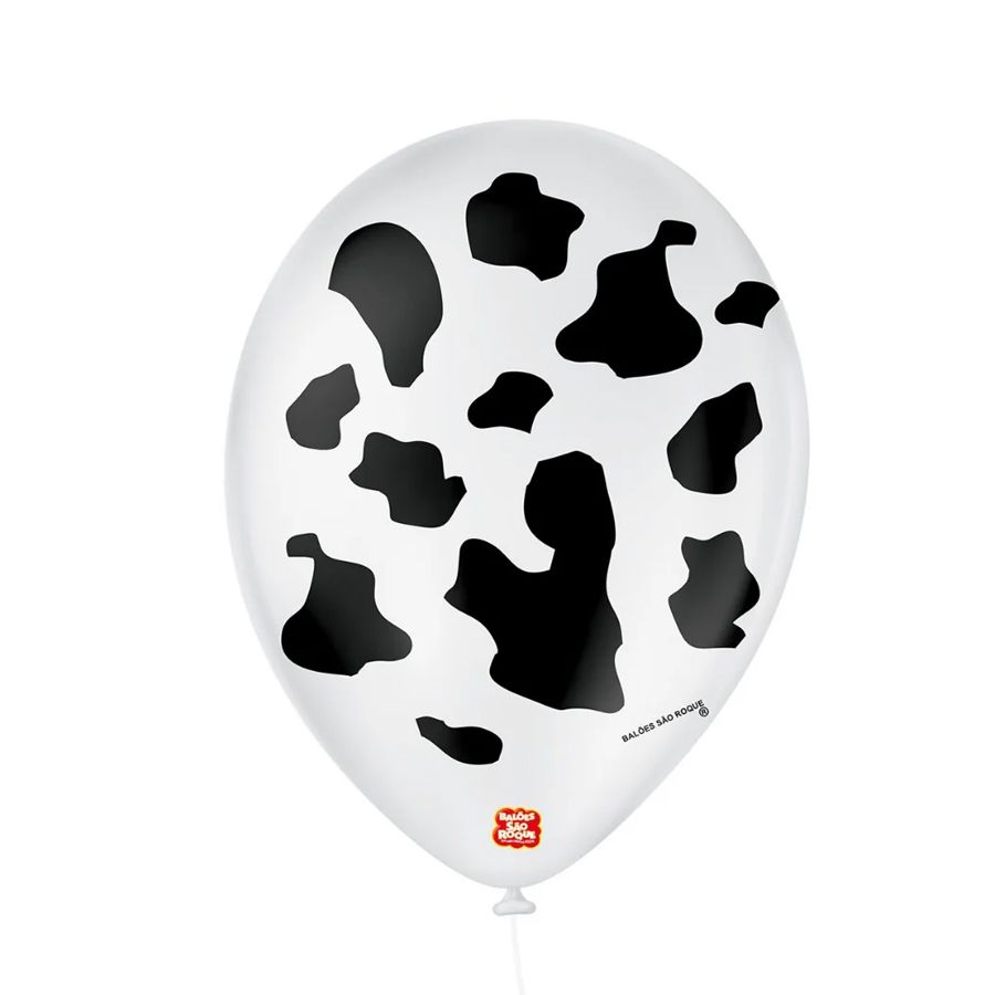 Balão de Festa Decorado Vaquinha - Branco e preto 9" 23cm - 25 Unidades - Balões São Roque