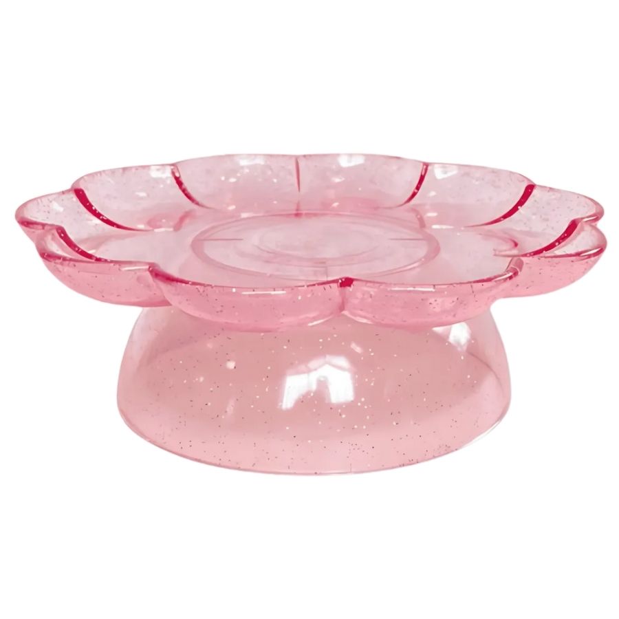 Bandeja Flower Com Pé - 205mm - Rosa Bebê Com Glitter - 1 unidade - Só Boleiras - Rizzo