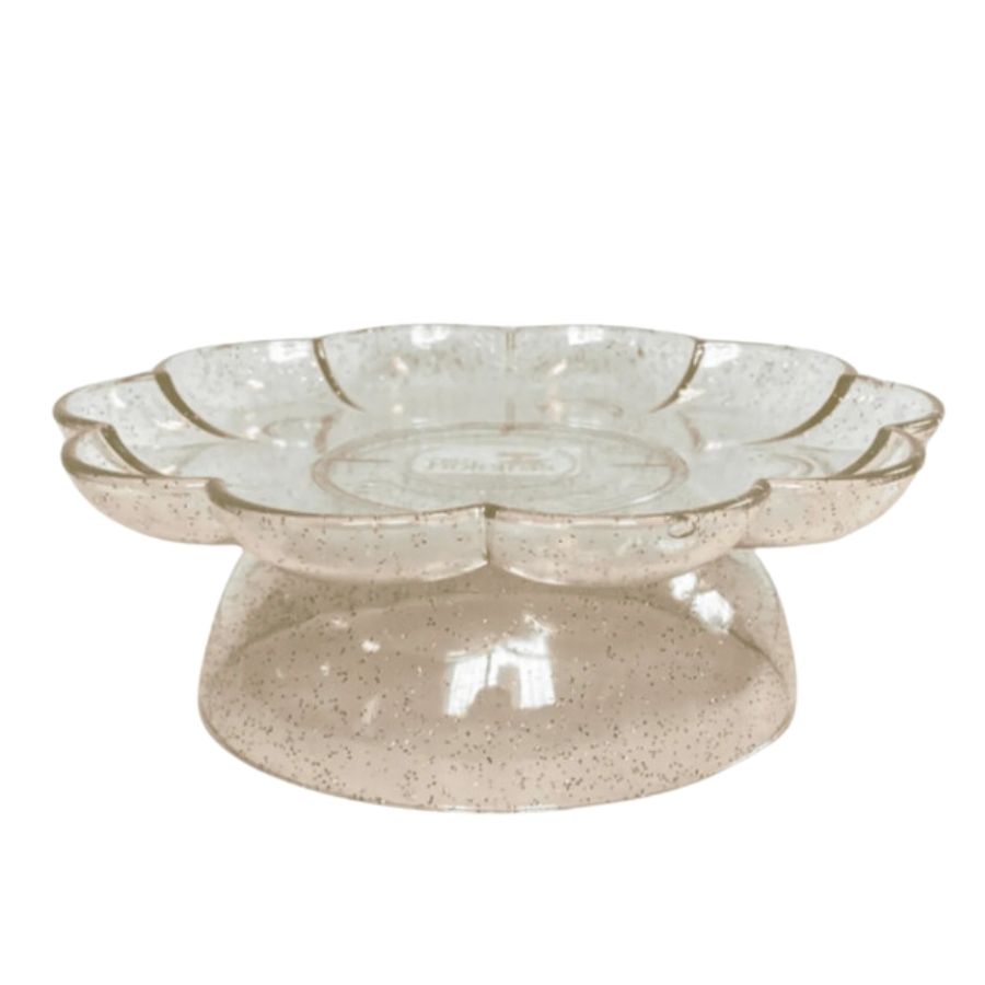 A bandeja Flower com pé, medindo 205mm, é uma peça delicada e elegante para diversas ocasiões. Com seu design sofisticado e acabamento impecável, ela é ideal para decorar mesas em festas, eventos ou criar composições especiais.