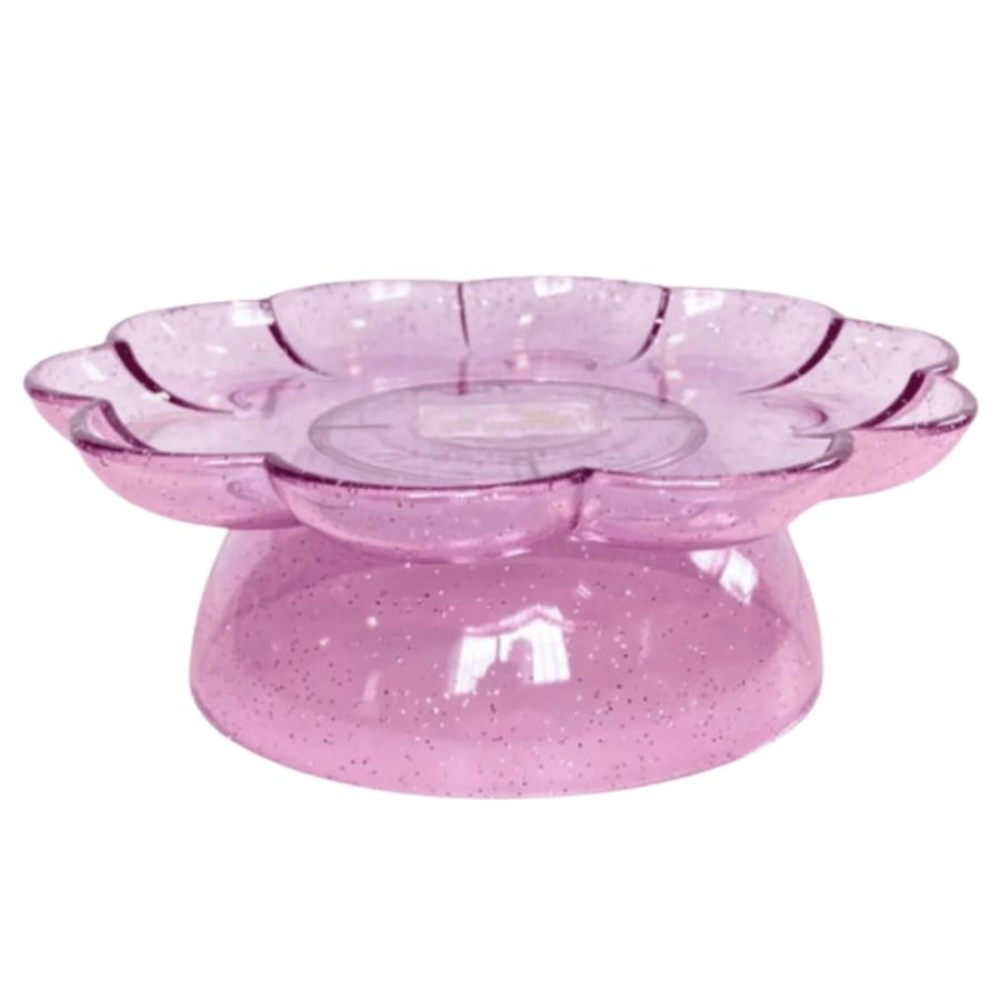 Bandeja Flower Com Pé - 205mm - Transparente Lilas Com Glitter - 1 unidade - Só Boleiras - Rizzo