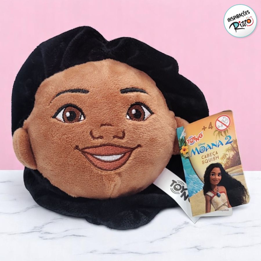 Brinquedo modelo squish de pelúcia, personagem Moana 2. Licenciado Moana Disney