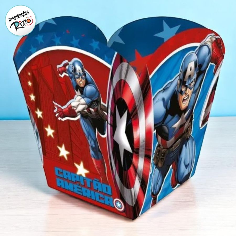 Transforme sua decoração com o Cachepot Centro de Mesa - Capitão América! Ideal para arranjos de mesa ou como porta-treco, este cachepot traz o espírito patriótico e a força do Capitão América para sua festa.