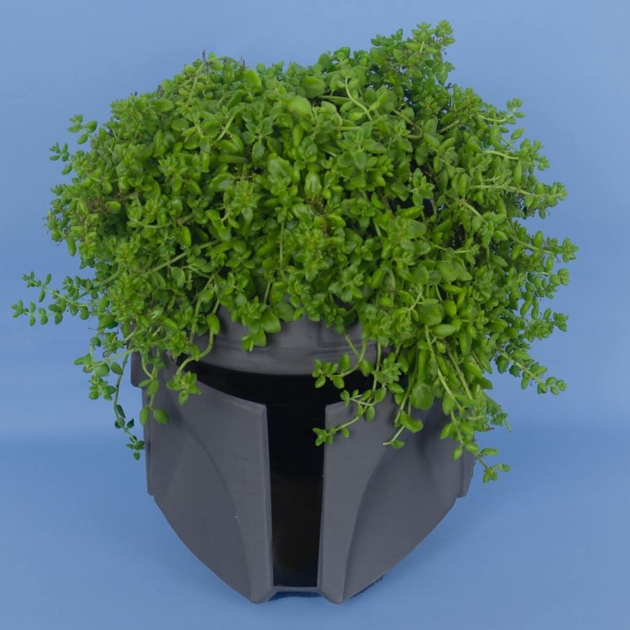 O cachepot inspirado no universo de Mandalorian traz o icônico capacete do lendário protetor de Grogu em uma peça grande, marcante e cheia de personalidade. Com 29cm, ele se destaca como elemento decorativo imponente, perfeito para quem deseja adicionar estilo e temática geek ao ambiente. Acompanha um vaso interno separado, permitindo colocar a planta com segurança e sem risco de danificar a peça, garantindo praticidade e durabilidade no uso.
