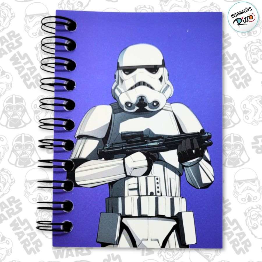 Mini caderno de anotações, folhas brancas pautadas, wire-o em metal, capa tema Stormtrooper - Star Wars - Disney