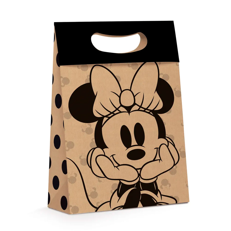 A Caixa Plus - Minnie Kraft é uma escolha adorável para os amantes da Minnie Mouse. Feita de papelão kraft, esta caixa maleta apresenta um design charmoso com detalhes pontilhados, proporcionando um visual encantador. A estampa da personagem Minnie Mouse é o destaque, adicionando um toque de magia e alegria à embalagem.