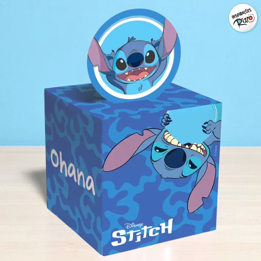 Caixa para lembrancinha modelo Pop Up tema festa stitch