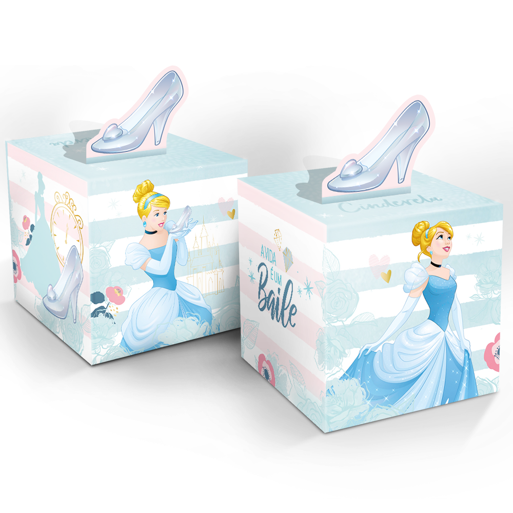 Encante seus convidados com a Caixa Surpresa - Festa Cinderela. Perfeita para distribuir lembrancinhas e guloseimas, essa caixinha traz um toque mágico inspirado na princesa Cinderela, deixando sua festa ainda mais especial.