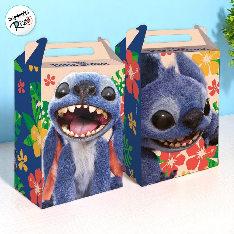 Caixa de papel para supresa festa Stitch Live Action. Licenciado Disney