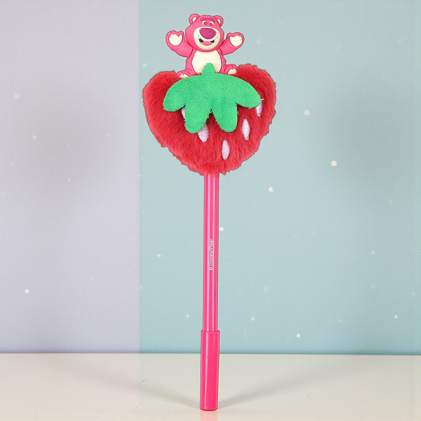 Caneta Esferográfica Lotso Morango de Pelúcia - 19cm Lotso Disney destaca-se pelo visual divertido e pela utilidade no dia a dia de estudos e anotações. O aplique com morango de pelúcia junto à figura emborrachada do personagem cria um efeito encantador, ideal para quem gosta de papelaria fofa e temática. A escrita azul 0,7mm é perfeita para uso em cadernos, planners e listas, trazendo praticidade com um toque lúdico. O design chamativo torna a caneta uma excelente escolha para composições criativas e kits temáticos de Disney festas, combinando com cadernos decorados, estojos e outros itens do mesmo personagem.