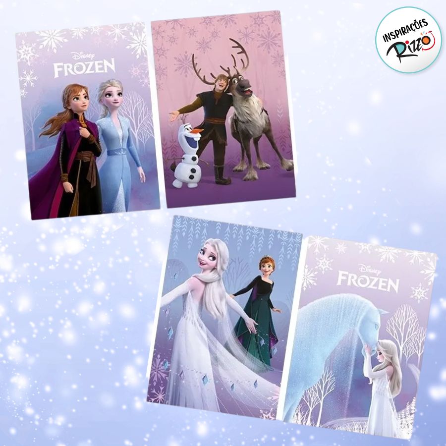 Cartaz decorativo inspirado na animação Frozen Disney, ideal para compor cenários mágicos na decoração de festas infantis temáticas. O kit inclui 4 figuras impressas em alta resolução, que podem ser fixadas em paredes, painéis ou cilindros decorativos próximos à mesa principal ou espaços para fotos.