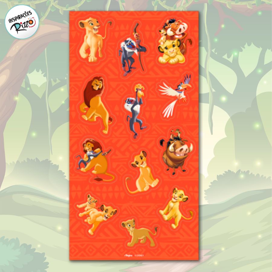 01 Cartela com 12 adesivos tema Rei Leão