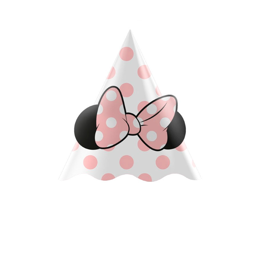 Um pacote contendo 08 unidades de chapéu de aniversario Minnie Mouse rosa