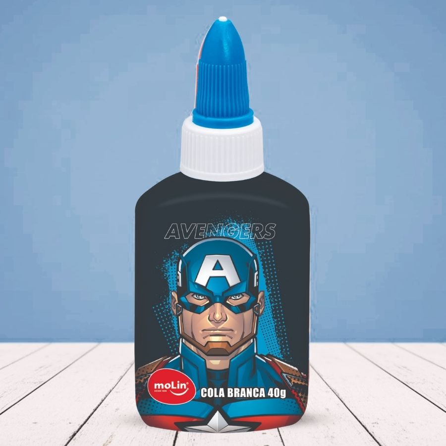 Cola Branca Capitão América - Vingadores - 40g - Disney Original - 1 unidade - Molin