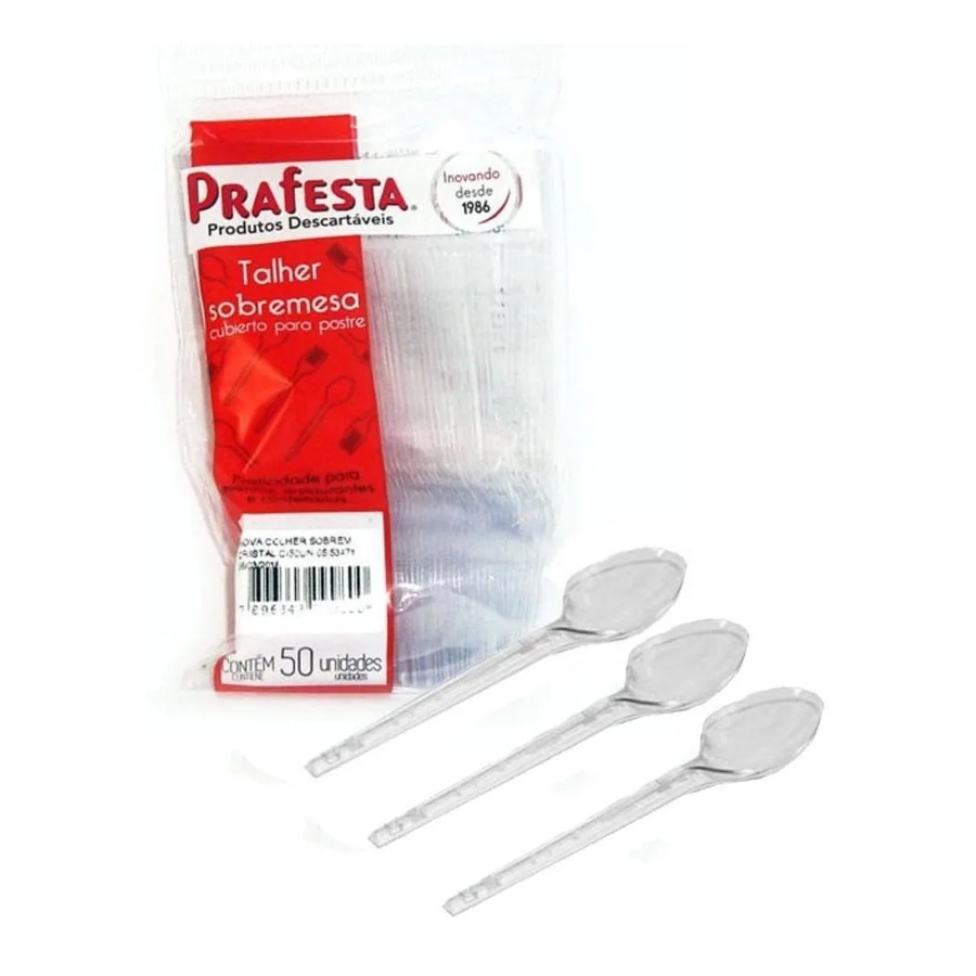 Colher Sobremesa Transparente - 50 unidades - Prafesta