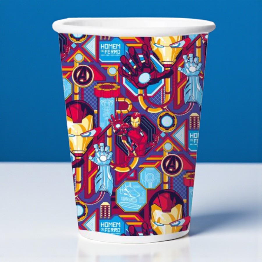 Copo de papel com estampa inspirada em Homem de Ferro Marvel