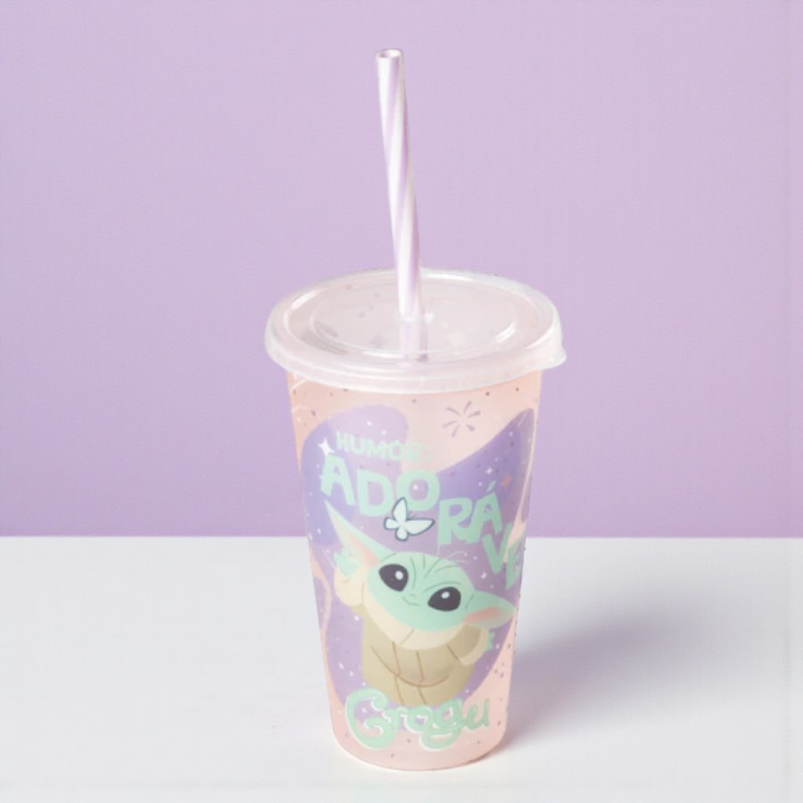 Copo de Plástico com Tampa e Canudo Grogu Star Wars Disney com capacidade de 500ml é perfeito para quem deseja unir praticidade e estilo. Possui acabamento fosco e transparente, com estampa inspirada em Grogu Disney (O Mandaloriano), trazendo um visual moderno e encantador. A tampa segura e o canudo reutilizável tornam o momento de se refrescar mais prático e divertido, ideal para fãs do universo Star Wars Disney.
