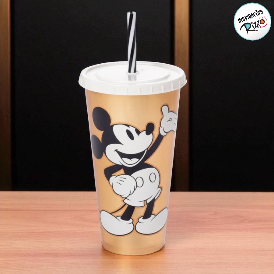 Copo com tampa, canudo, estampa licenciada e inspirada no personagem Mickey Mouse Disney.
