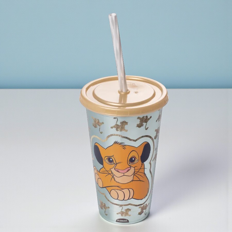 Copo de Plástico com Tampa e Canudo - Rei Leão - Simba - 500ml - 1 unidade - Disney Original - Plasútil