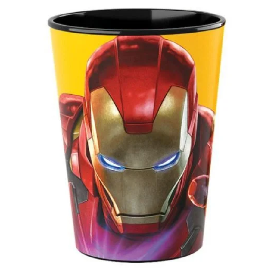 Copo de plástico com estampa do Homem de Ferro, ideal para festas temáticas e uso diário.