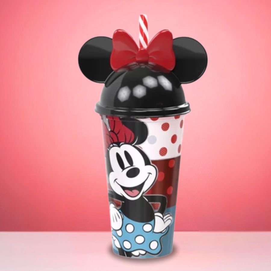 Copo com tampa e canudo inspirado em Minnie Mouse Disney