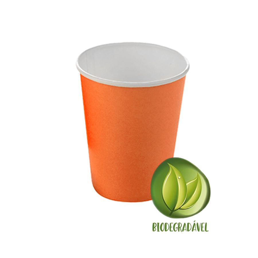 Copo de papel biodegradável na cor Laranja, ideal para festas temáticas e eventos sustentáveis.