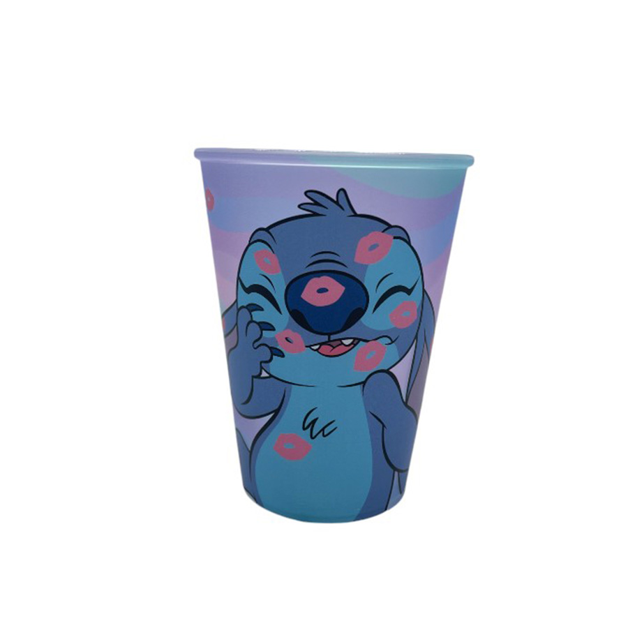 Copo decorado de plástico temático do Stitch com beijos na cor lilás e azul