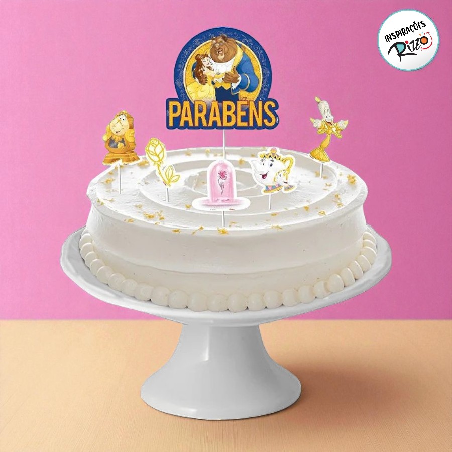 Conjunto de decoração de bolo, inspirado na história de A Bela e a Fera Disney