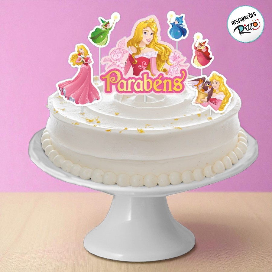 Conjunto de decoração de bolo, inspirado na Princesa Aurora Disney