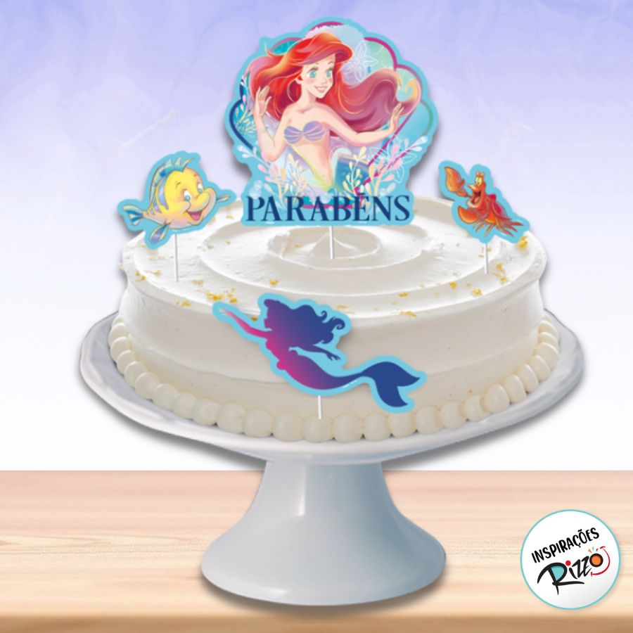 Decoração de papel para Bolo Ariel, acompanha pequeno palito para fixar no bolo.