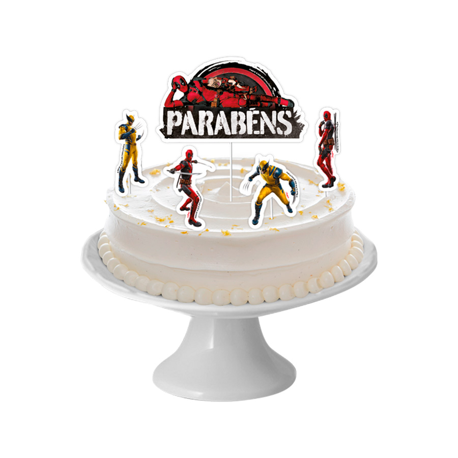 Dê um toque de ação e irreverência à sua festa com a Decoração de Bolo Cenário Deadpool! Perfeita para fãs do mercenário, essa decoração cria um cenário épico e divertido para seu bolo, transformando-o em um verdadeiro destaque da celebração.