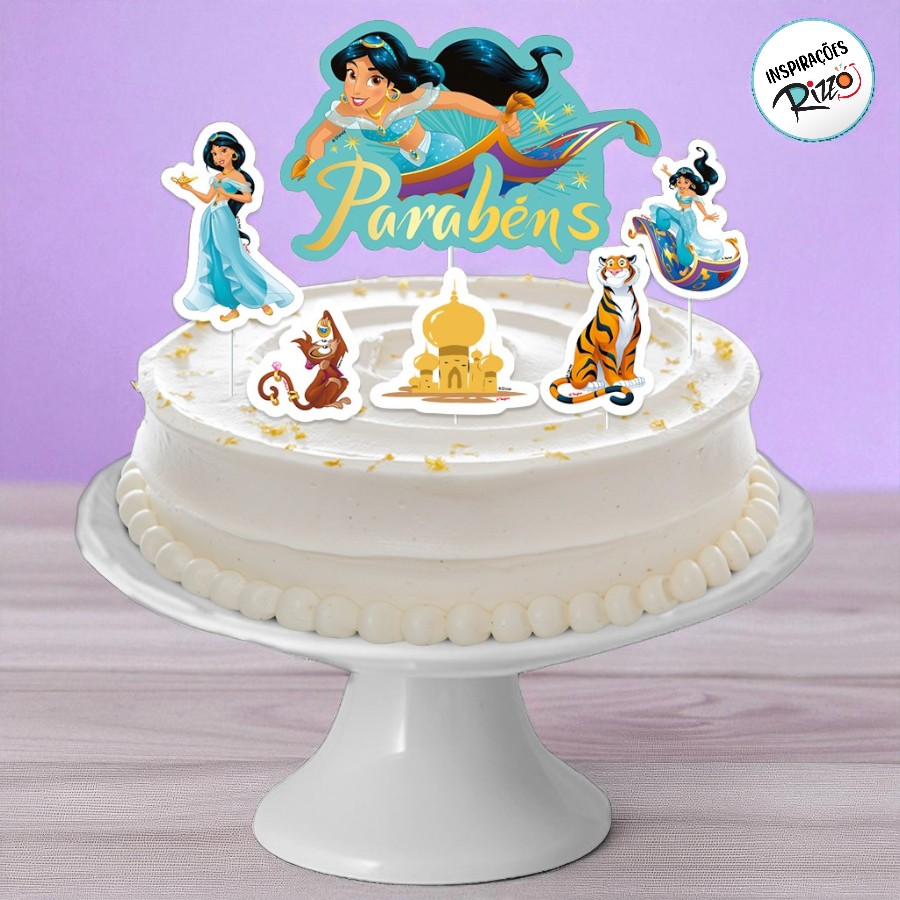 Conjunto de decoração de bolo, inspirado na Princesa Jasmine Disney