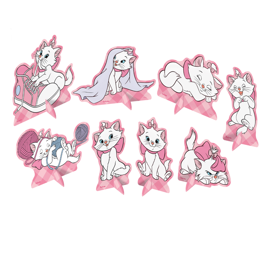 A Decoração de Mesa Festa Marie é a escolha perfeita para trazer charme e personalidade à sua celebração. Composta por 8 unidades, cada decoração apresenta personagens da adorável gatinha Marie e seus amigos, com tamanhos variados, sendo a média de 20 cm de altura. Elas são ideais para compor a mesa da festa e encantar seus convidados com o estilo delicado e elegante da personagem.