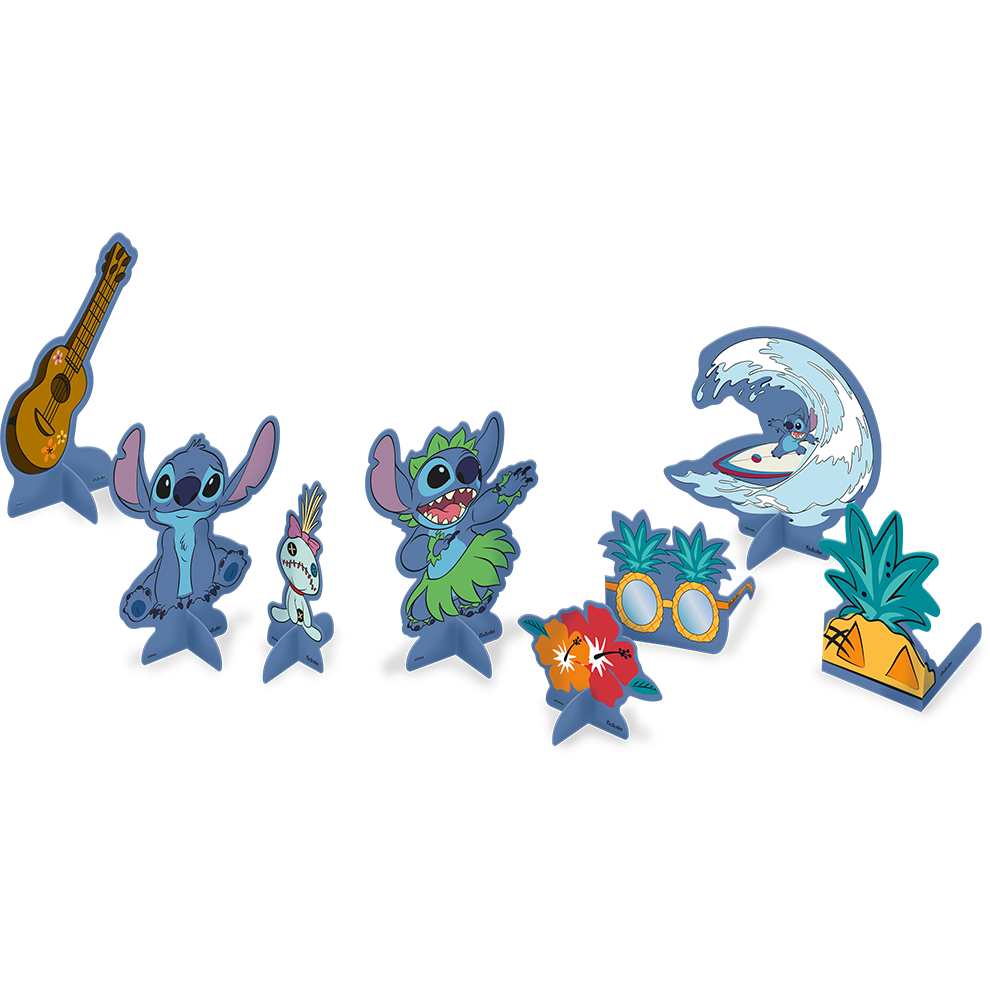 A Decoração de Mesa Festa Stitch é ideal para complementar a sua festa com um toque especial! Com estampas vibrantes e inspiradas no adorável personagem Stitch, esse conjunto de enfeites é perfeito para tornar a decoração ainda mais divertida e encantadora. Feitos em papel cartão com pigmentos atóxicos, são leves, fáceis de montar e deixam a mesa com um visual incrível.