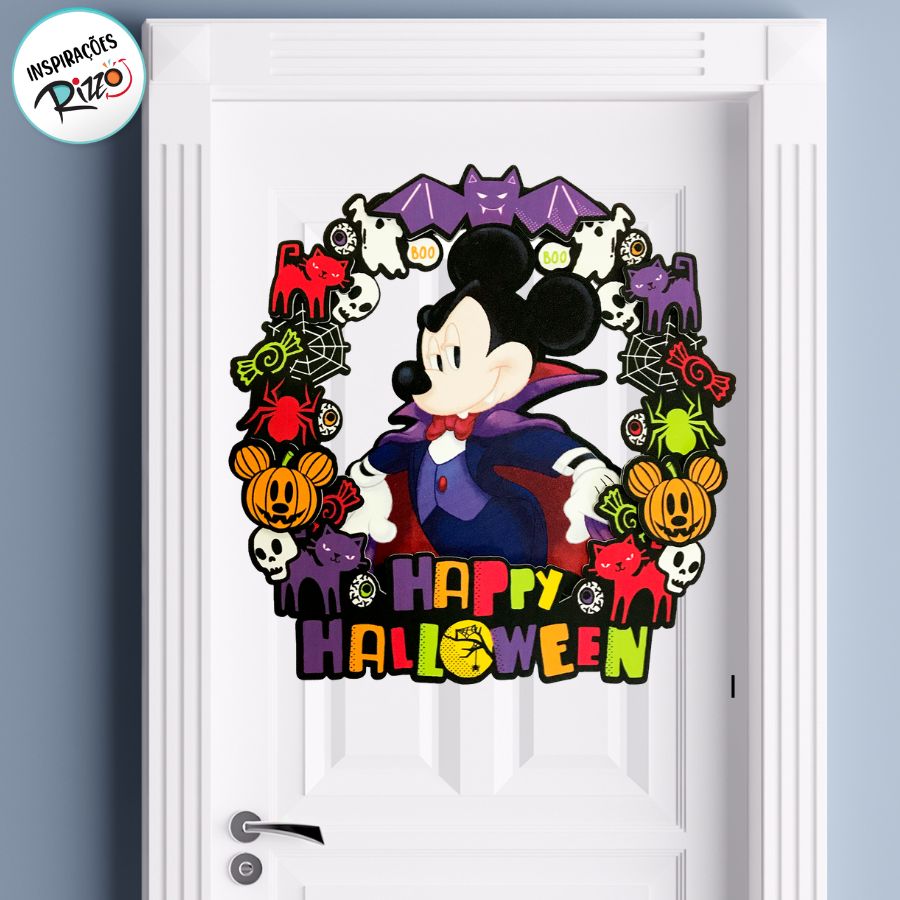 O Enfeite de Pendurar Mickey Mouse Halloween Disney é a escolha ideal para complementar a decoração com charme e temática divertida. Medindo 30x30cm, pode ser usado como guirlanda na porta de entrada ou como detalhe decorativo na mesa principal da festa.