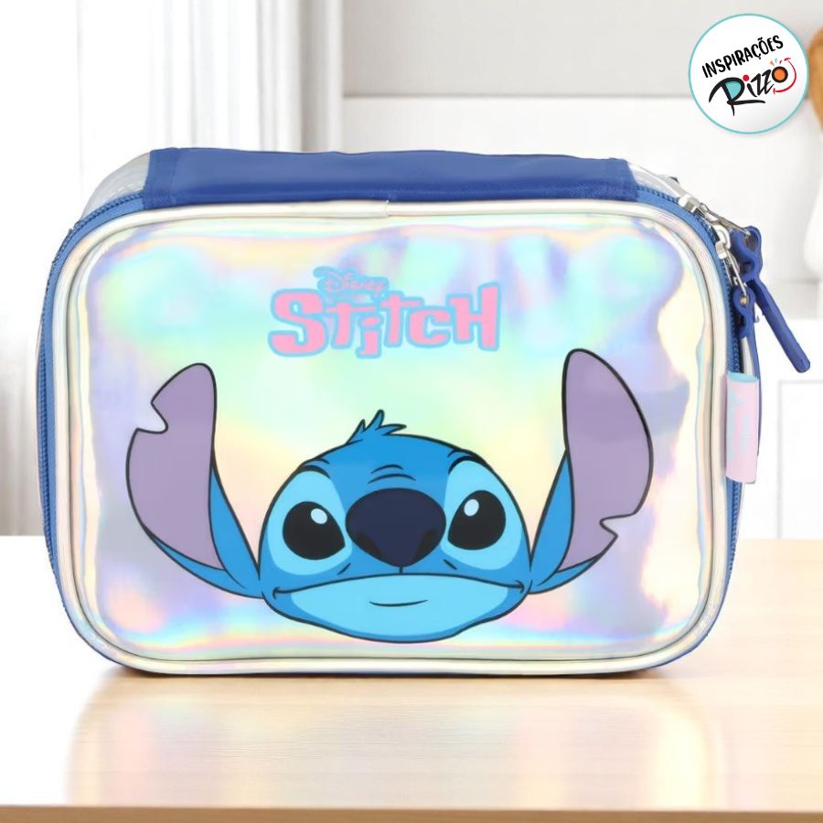 O Estojo Box Holográfico - Stitch Disney é perfeito para quem deseja manter a organização com muito estilo e brilho. Com um formato espaçoso de 22x16x5cm, este estojo apresenta um visual holográfico encantador com estampa licenciada do personagem Stitch Disney. Ideal para uso escolar, artístico ou no dia a dia, ele é funcional e cheio de personalidade.