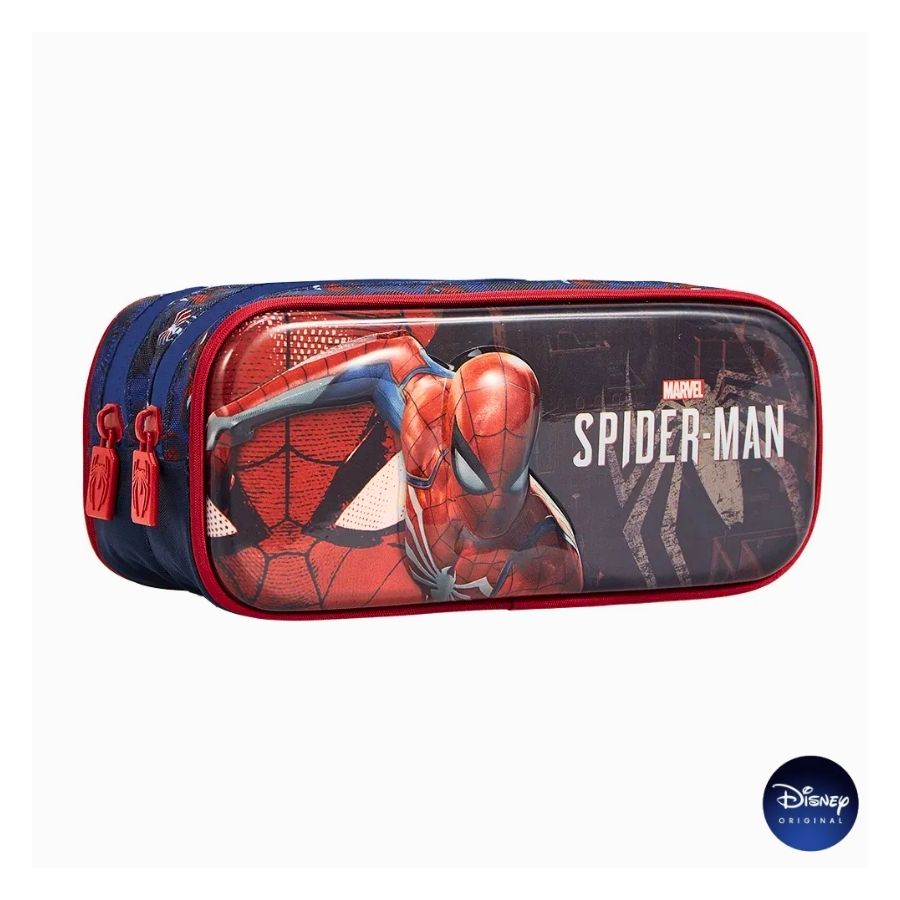 Estojo Duplo Spider-Man com dois compartimentos e design exclusivo do herói. Funcional, resistente e ideal para o dia a dia escolar.