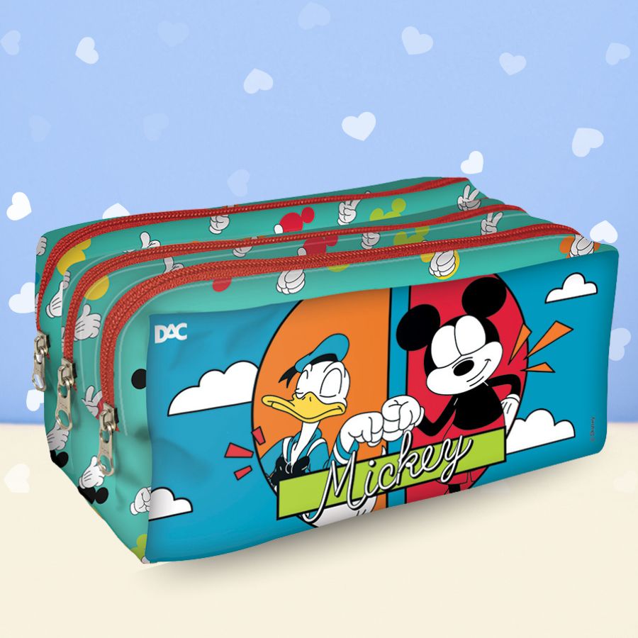 O Estojo Triplo com Zíper inspirado no Mickey Mouse Disney é ideal para organizar materiais escolares de forma prática e funcional no dia a dia. O modelo possui três divisórias independentes, cada uma com zíper, formando três bolsos que facilitam a separação de canetas, lápis, canetinhas, marcadores, borracha, apontador e outros itens de papelaria. Essa estrutura de estojo triplo, com três partes bem distribuídas, ajuda a manter os materiais organizados durante as aulas, estudos e atividades criativas. O visual temático do Mickey Mouse Disney traz um estilo clássico e atemporal ao material escolar.