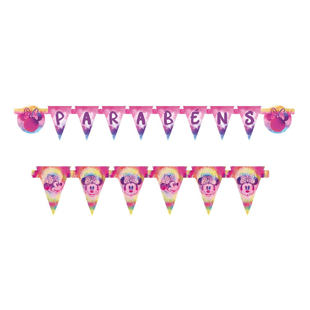 Este produto original licenciado Disney vai deixar sua decoração mais alegre e colorida, com a fofura da Minnie e a energia do Tie Dye! Aproveite a magia da Disney para criar uma festa cheia de alegria e encanto!