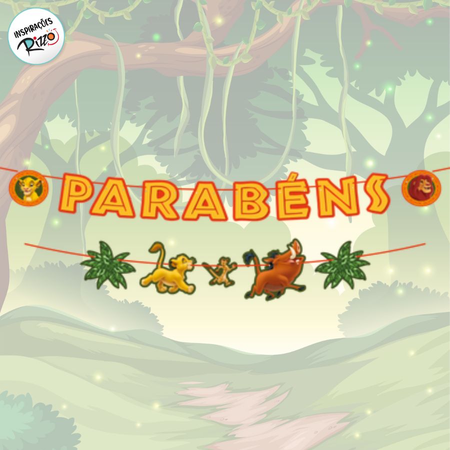 Ideal para destacar o tema da sua comemoração, essa faixa pode ser colocada na frente da mesa de doces ou fixada na parede atrás da mesa principal, deixando sua festa ainda mais encantadora. Uma opção criativa para quem busca personalizar o ambiente com os personagens do Rei Leão!