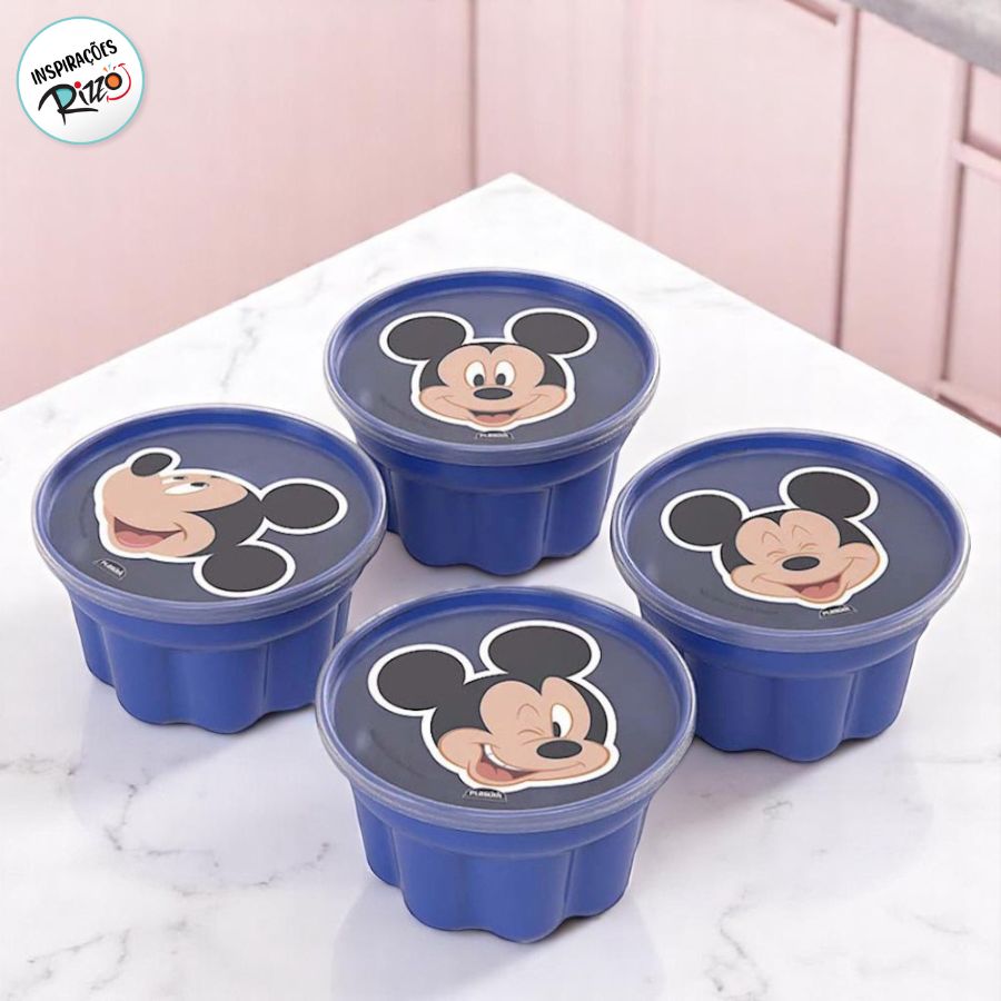 Kit com 4 formas de plástico para gelatina. Tema Mickey Azul.