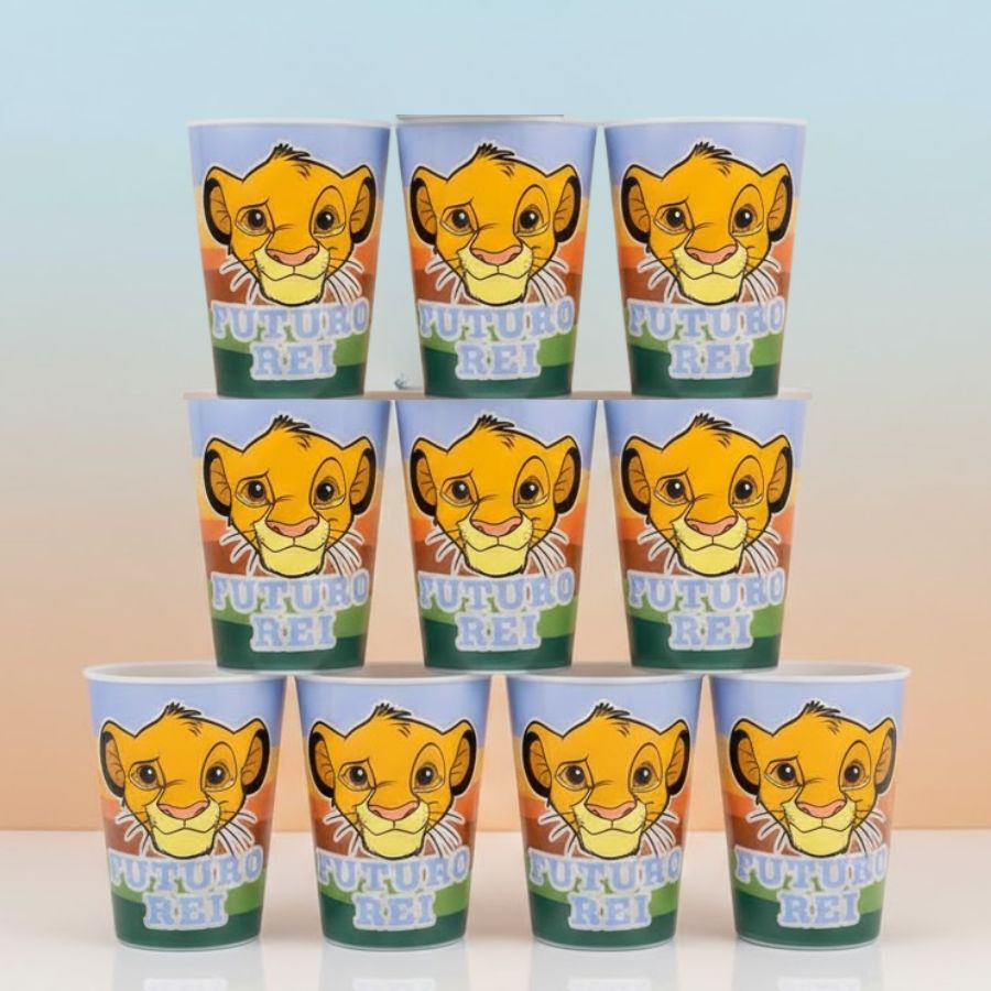O Kit com 10 Copos para Lembrancinha inspirado em Rei Leão Disney, com capacidade de 320ml, é ideal para festas infantis e comemorações temáticas. Os copos são práticos para servir bebidas durante a festa e também para uso no dia a dia, auxiliando na hidratação das crianças. Perfeito para montar sacola surpresa, lembrancinha festa infantil e kits personalizados, o conjunto facilita a organização do evento de forma funcional. Sonhar, realizar e comemorar fica ainda mais simples com itens temáticos disponíveis na Loja Disney.