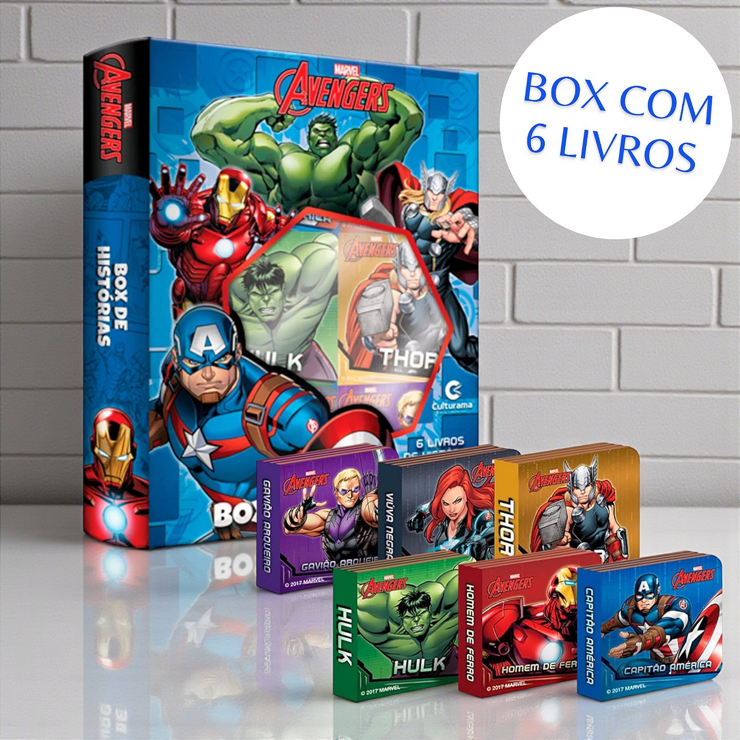 Box com 6 mini livros inspirados em Vingadores Marvel - Disney