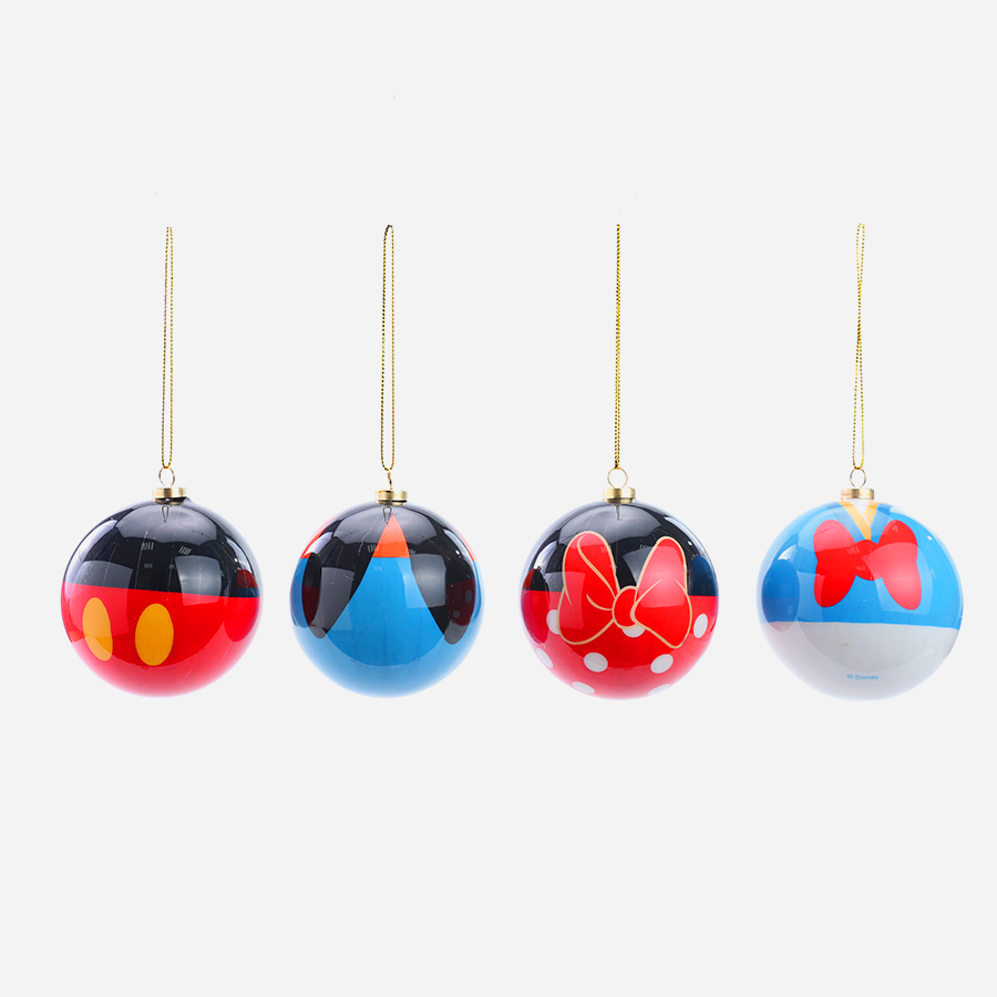 Enfeite Bola de Natal da Disney. Esta decoração representa os personagens da Turma do Mickey e suas silhuetas. Bem detalhadas e coloridas, de aproximadamente 8 centímetros, são compostas de Plástico. Vem com fitilho para pendurar.