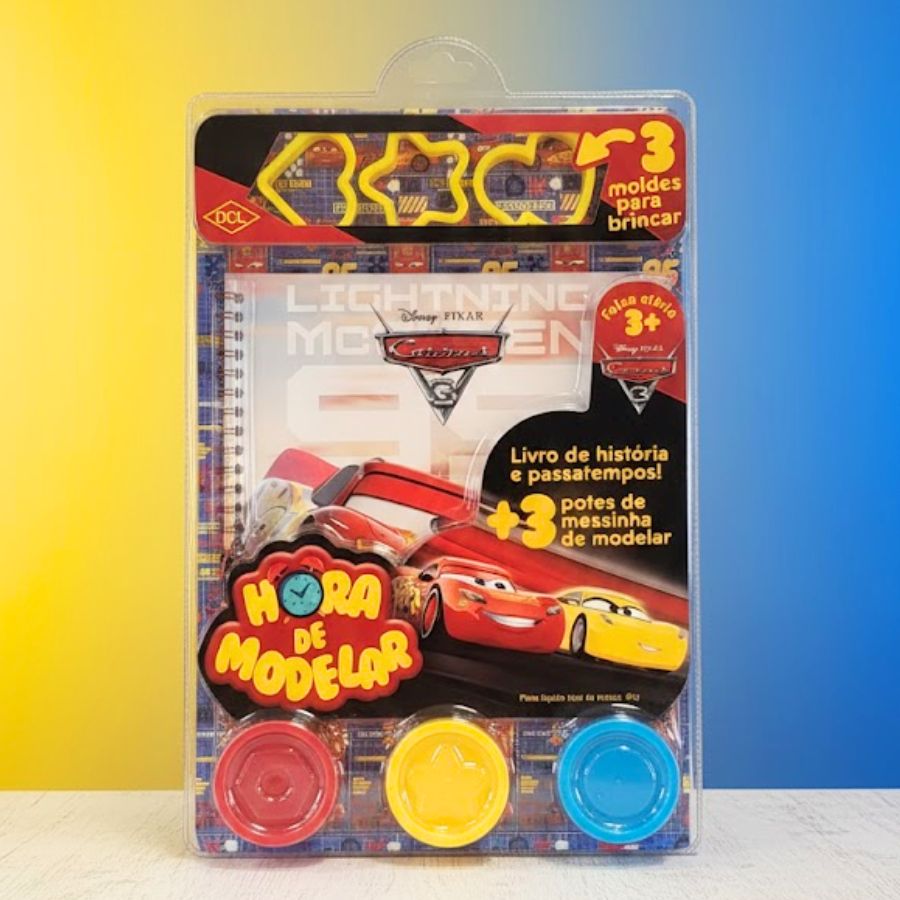 O Kit Hora de Modelar com Massinha inspirado em Carros Disney reúne 7 itens desenvolvidos para incentivar criatividade, coordenação motora e imaginação em crianças a partir de 3 anos. O conjunto inclui 1 livro de histórias e passatempo, 3 moldes temáticos e 3 massinhas de modelar, oferecendo uma experiência divertida e educativa para uso em casa, na escola ou em recreações temáticas. Com certificação Inmetro, garante segurança e conformidade para o uso infantil. Sonhe, realize e comemore com um item especial disponível na Loja Rizzo.